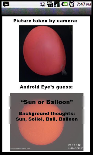 Android Eyeadvanced Object Recognition app. Takepicture any object, Android Eye tell what.